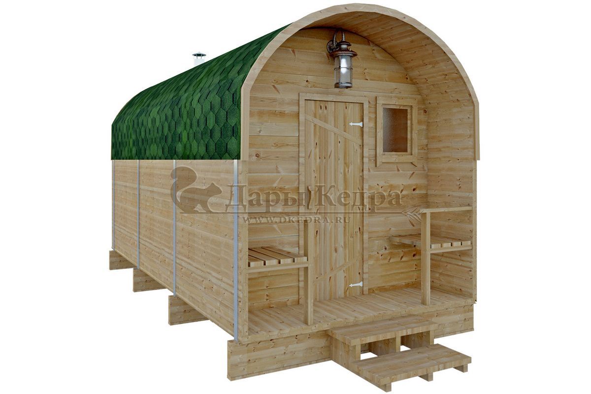 Баня-бочка буханка из кедра с верандой (все размеры)